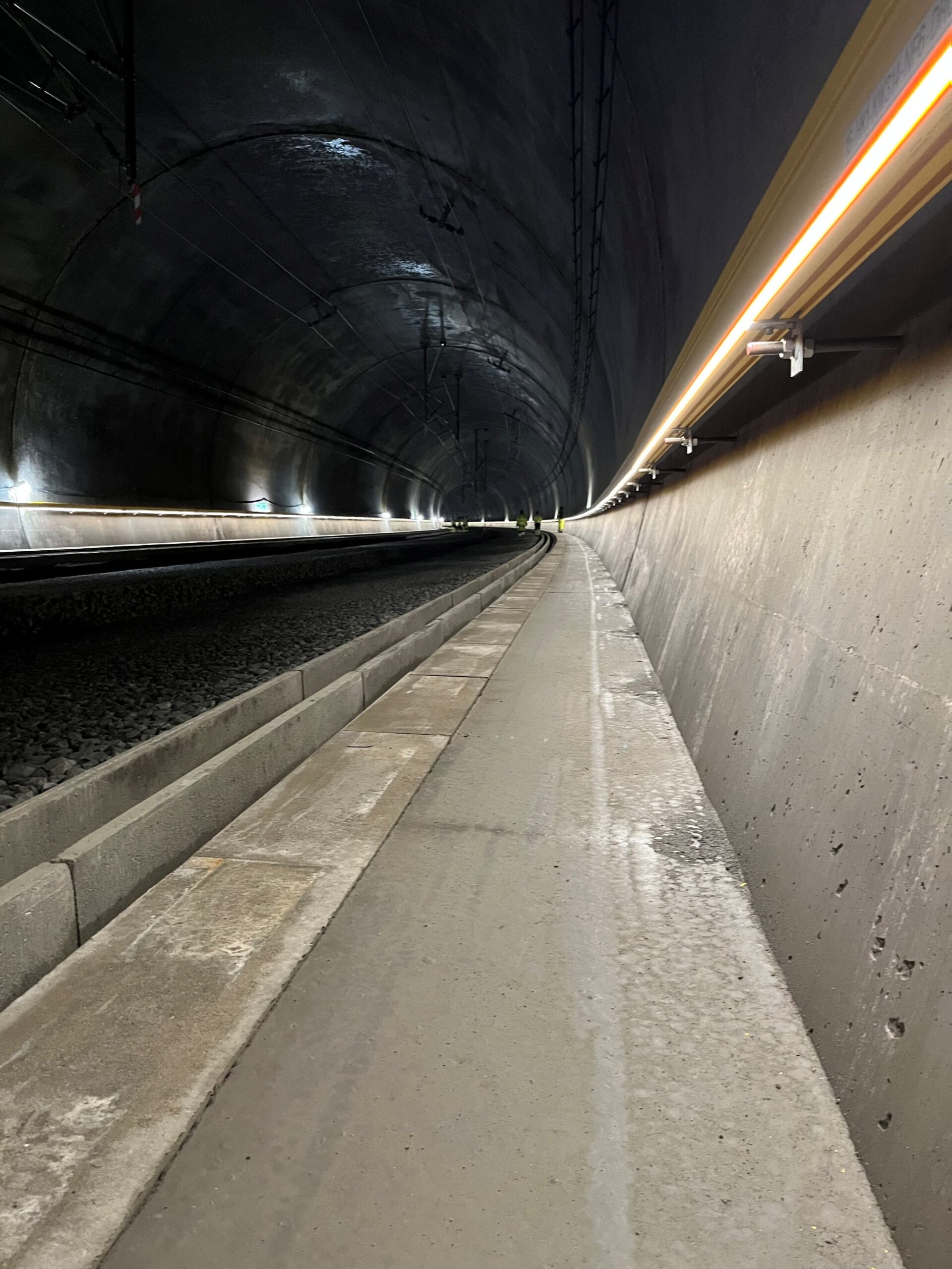 The LED strips and handrails are manufactured by Döllken Profiles in Germany to ensure high quality and compliance with the strict EU requirements for railway tunnels.